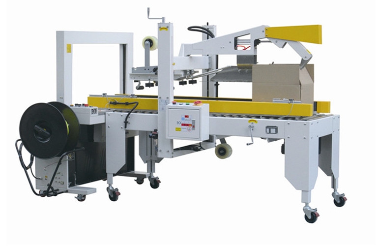 打包封箱一體機是以BOPP膠紙為封箱材料,可同時對紙箱進行上下“一”字型封箱,兩側(cè)馬達驅(qū)動皮帶自動校正、輸送紙箱,封箱時快速平穩(wěn),適用于較重較寬紙箱。兩側(cè)輔助輪協(xié)助機器封箱時中縫集中不開裂。臺面高度、紙箱寬度高度可自主調(diào)節(jié),簡單實用。造型典雅大方,配備刀片防護裝置,避免操作時意外刺傷。機件穩(wěn)固耐用,使用壽命長。機身自帶四個高強度剎車輪,換位工作非常方便。