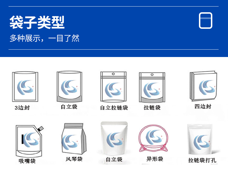 可以滿足常用的三邊封,四邊封袋,更能實(shí)現(xiàn)掛孔袋、目立袋、異型袋等特種袋型的包裝;